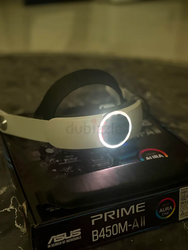 The is a Headstrap with a battery pack that lasts for over 8 hours while playing.