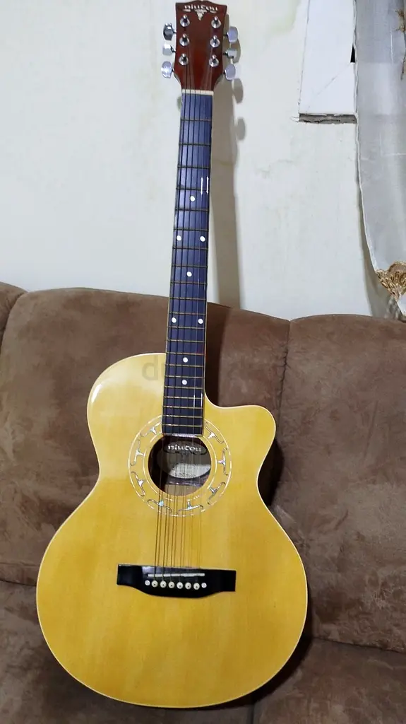 I'm selling my used acoustic-electric cutaway guitar. I bought it about 3 years ago and it has been well cared for. It plays and sounds good with clear tone, and the cutaway makes upper-fret access easy. The body has normal light surface scratches and a few tiny dings from regular use but no cracks. The fretboard and frets are in good shape with no major wear, and the tuners hold tune reliably. The built-in pickup/preamp works fine when plugged into an amp. Comes with strings currently fitted (they still have good life left). Selling because I rarely play anymore.