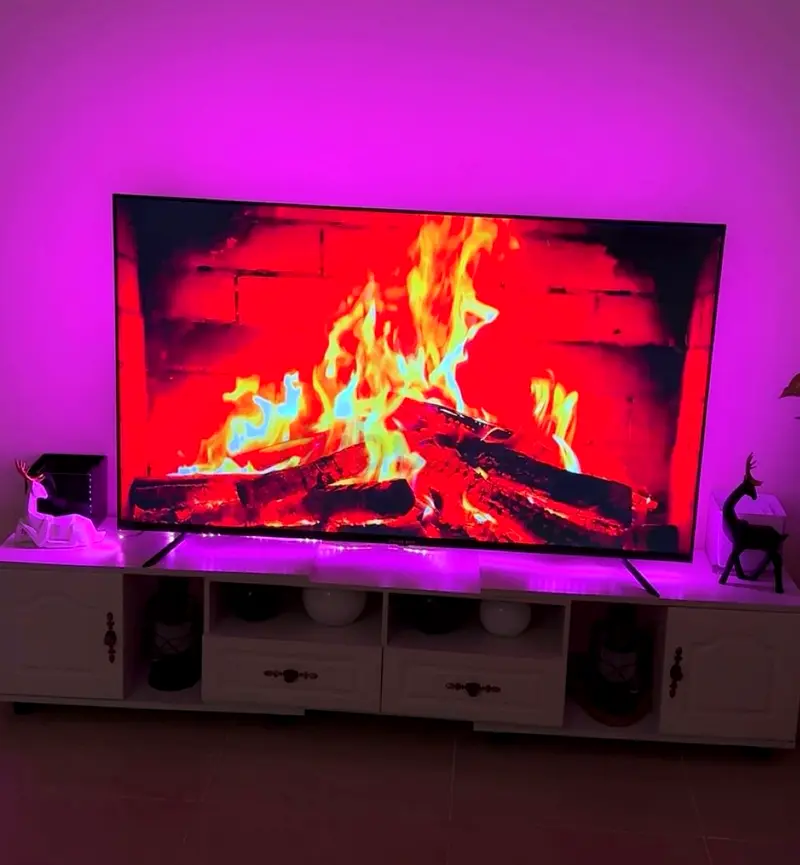 I'm selling my Nikai QLED LCD TV which offers an immersive viewing experience with its stunning FHD-1080p resolution. The TV is 60 inches wide, making it perfect for any living space. I've used this TV for light usage, and it's in flawless condition, functioning perfectly without any issues. The beautiful lighting behind the TV makes for a cozy ambiance, especially when watching movies or enjoying your favorite shows.