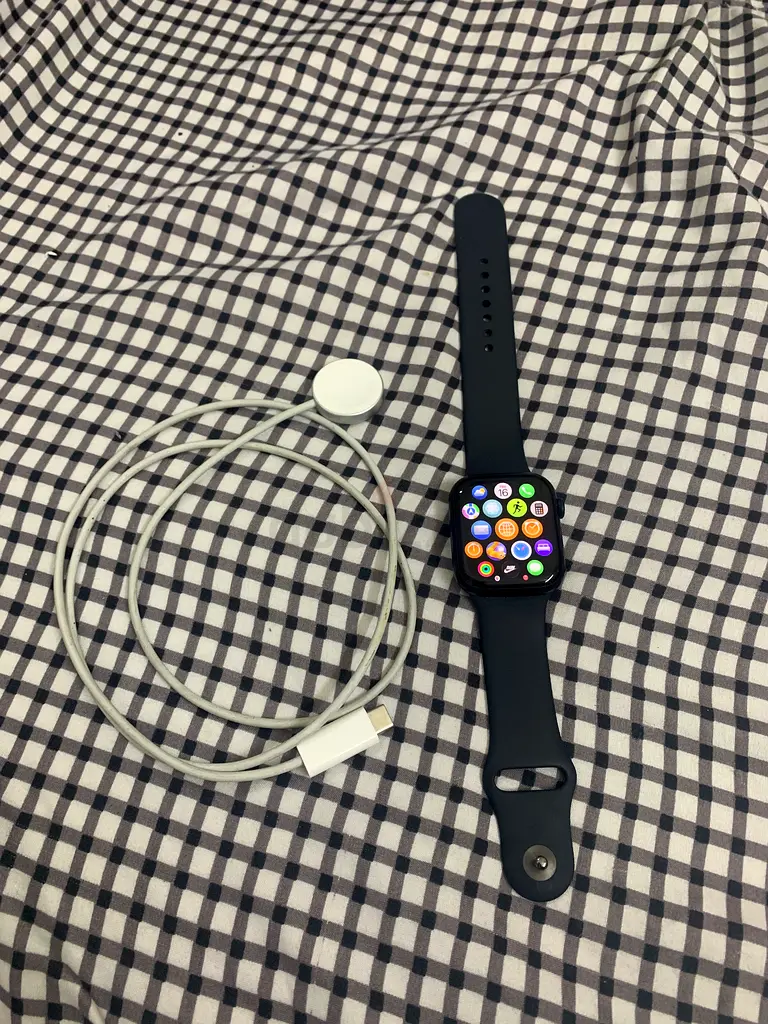Apple Watch Series 8 in great condition. This is the USA Version, so all health sensors (Blood Oxygen/ECG) work perfectly in the UAE.
